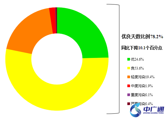 5月,全國339個地級及以上城市平均空氣質量優良天數比例為78.2%,同比下降10.1個百分點;平均重度及以上污染天數比例為0.5%,同比下降0.1個百分點;由沙塵天氣導致的平均超標天數比例為2.9%,其中重污染天數比例為0.5%。